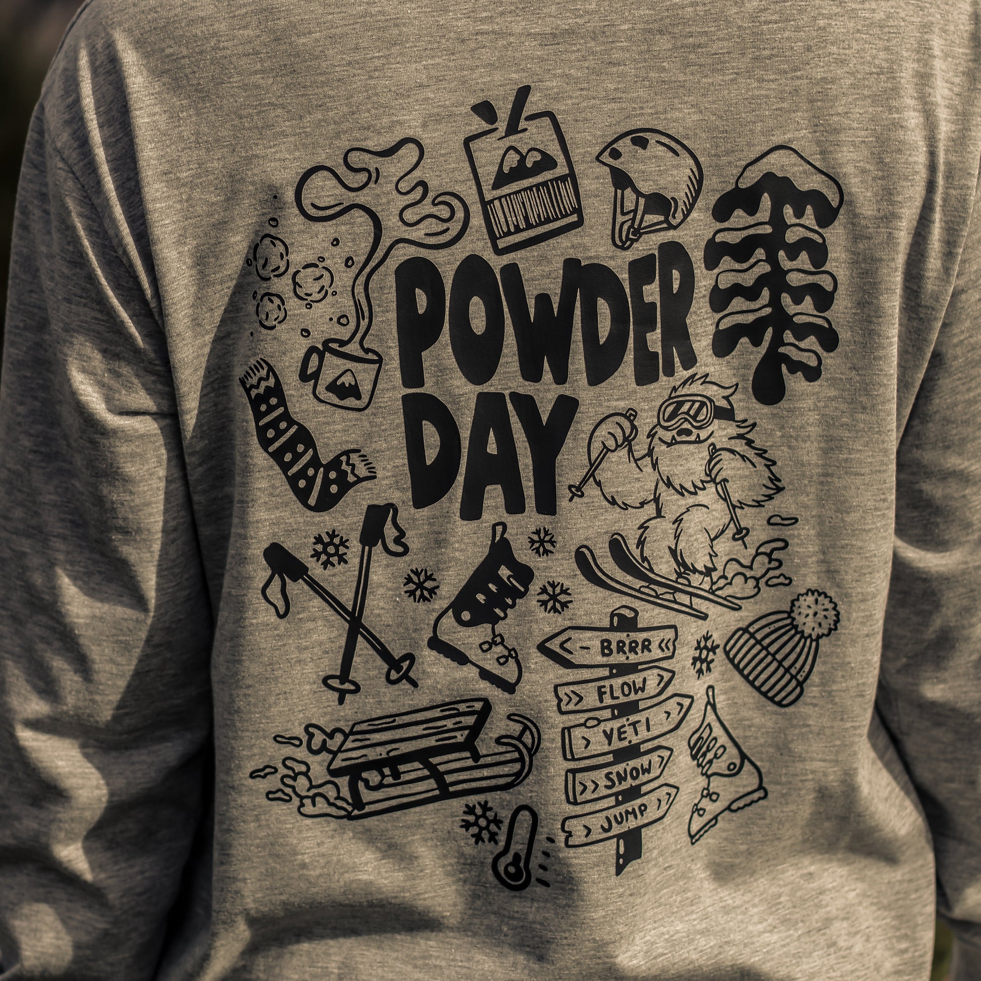 Genau dieses Gefühl fängt mein Bügelbild Powder Day ein.